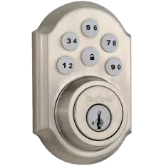 Above is a Kwikset, Z-wave deadbolt lock. It can be locked and unlocked from your smart-phone, with a key, or with the push button combination.